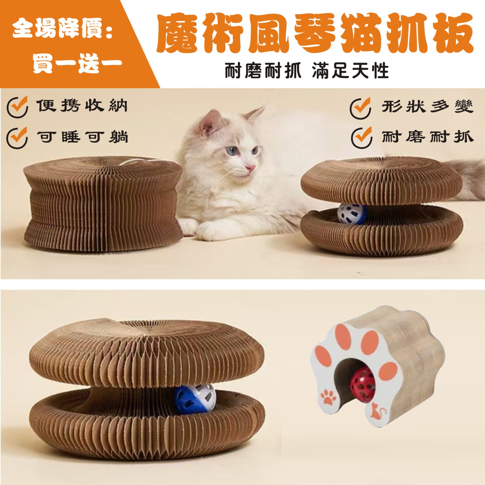【限時回贈,買一送一】魔術貓爪風琴貓玩具